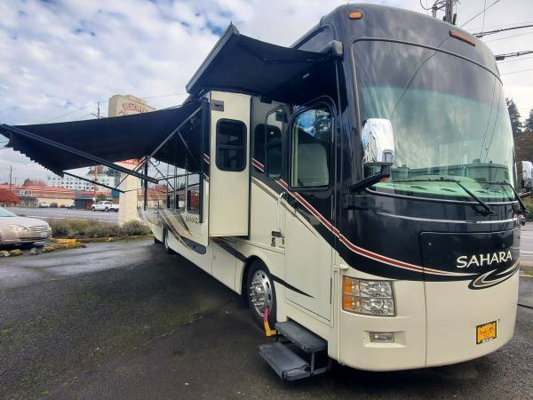 Comes with 1 Year Service Contract when purchased at the advertised price. Beautiful Full Body Paint Diesel Pusher w/ 45,227 miles, Washer/Dryer, 3 Slides. Sleeps 4.