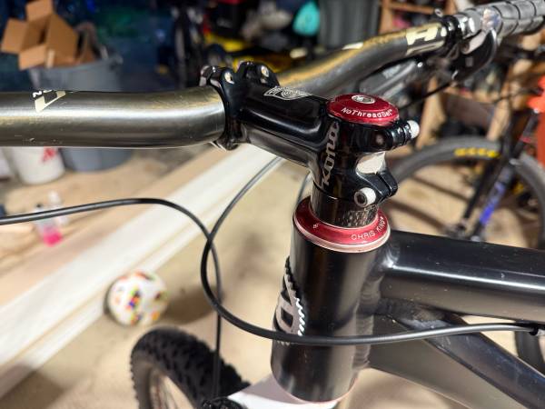 Kona Big Unit, not to be confused with the steel unit—this is a Scandium aluminum frame(medium). This is a great, fast 29er with race ready components. Chris King throughout(including BB), and really nice newer SRAM Guide brake set. I love the handling of this bike and the 120mm travel Reba fork performs well. The gearing is set up ideally with the 29 inch wheels (tubeless) with 32/18 chainring/cog.