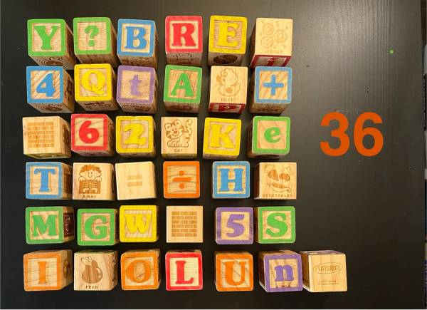 Wooden Alphabet Building Blocks $10 OBO - Playskool (2013) - 36 pieces - Clean, gently used - Great for play or crafting