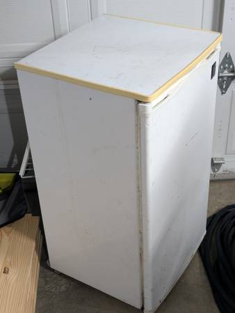 Works great, recently tested. ~3 cu ft model with functional icebox. Has sat unused in the garage for years, time to find a new home.