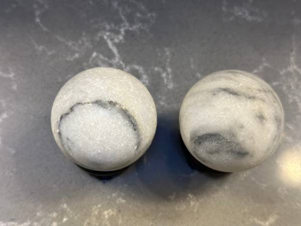 Natural Polished Marble Quartz Granite sphere orb with wooden stand - set of 2 Excellent condition