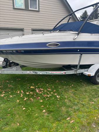 Selling my 1992 Four Winns 195 Sundowner cuddy cabin with a MerCruiser sterndrive and a galvanized tandem-axle King trailer. This is a clean, well-kept 20’ cuddy that’s great for cruising, tubing, or an overnight on the water. Blue and white hull still shines, and it has a matching cockpit cover to keep everything protected. Open to offers!