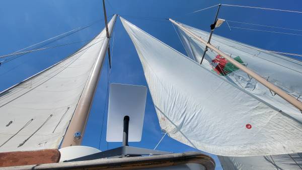Installed a brand new Lofrans Faulkin windlass with new 300 feet of 7/16 G4 anchor chain and 110lb CQR anchor. 3000watt inverter and charger allows use of 110 outlets, there are 12v LED lights throughout the vessel - all new. New bilge pumps throughout. She has a drop-down dagger board that cranks up and down in the pilot house, draws 5.5 feet up and 9.5 feet down - helps her sail beautifully. Beam is 16.5ft across. 600ft of 3/4" stern tie line on a reel on the back deck. New dock lines and fenders.