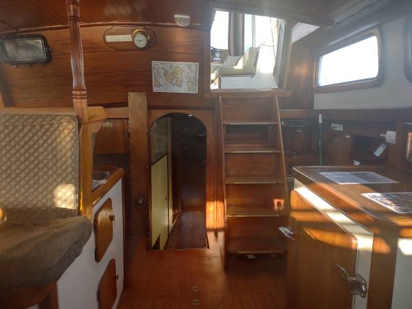 This is our second ferro cement boat we have lived aboard on and we love them. They stay cool in the summer time and warm in the winter. They are quiet inside and cut through the water beautifully. Waves hit the side of the hull and roll back the other way, not sending this vessel tossing back and forth. Bomb and bullet proof. She was made with sailing the world in mind. She has sailed from Mexico to Alaska. We have homeschooled and lived aboard traveling for the last ten years but as our first of four sons is now into his teenager years, seems settling down into a house next to their school is in order.
