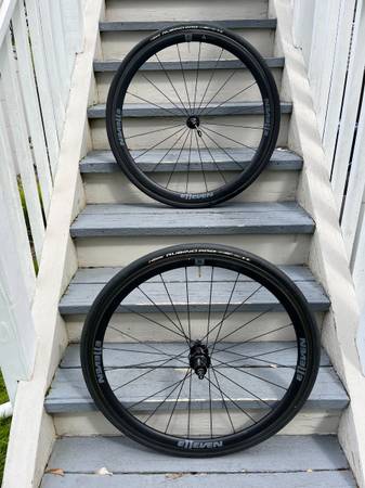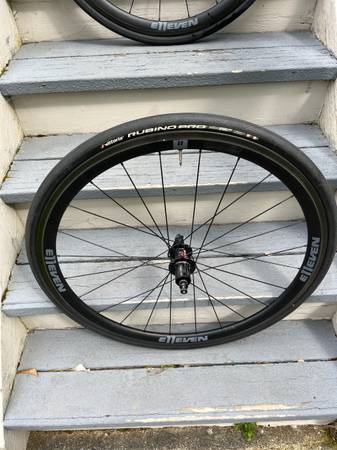 For Sale are an Excellent set of DT Swiss + e11even Carbon Wheels. A complete wheel set with included Tires. DT Swiss 370 Hubs DT Swiss Aero lite spokes Shimano/SRAM HG 9/10/11 speed free hub Quick...