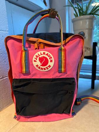 If you are familiar with this brand you know they are built to last and not cheap. This bag was custom designed with pink, black and rainbow straps. The bag has been laundered and is clean but shows some wear but still looks good. May be able to deliver if within a short distance. See pics for measurements.