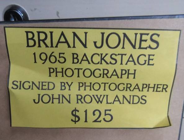 I got this used some years ago - @ 16 x 24 /? -- framed, mounted and signed by J Rowlands - photographer - 1965 Brian Jones Backstage - // - - - - The Rolling Stones in Canada. SOME WEB SITES SELL...