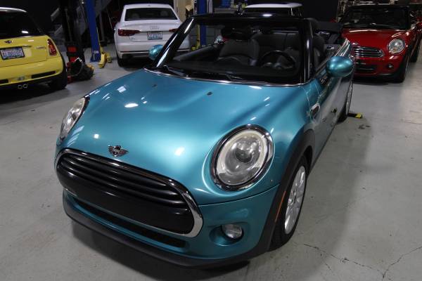 2016 Mini Cooper Convertible 3 cylinder turbo. automatic transmission with 129k Miles. Carribran-Aqua Metallic exterior with black leather interior. CLEAN title. Mini runs and drives great. Services are up to date included brake pads and front timing cover replacement. text 2069818002 to make an appointment. FINANCING AVAILABLE