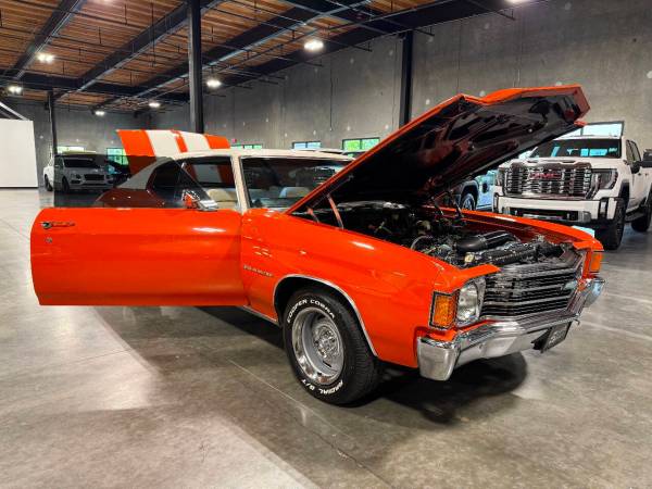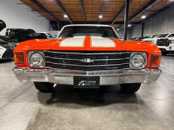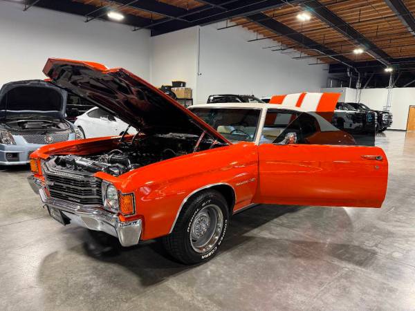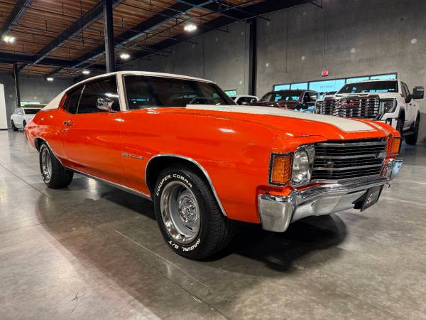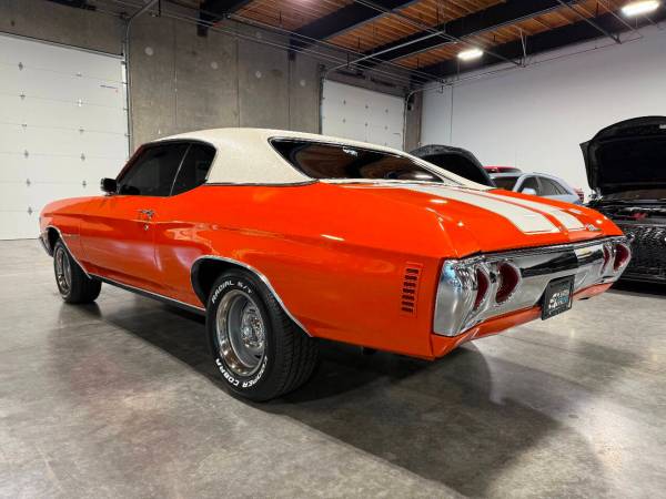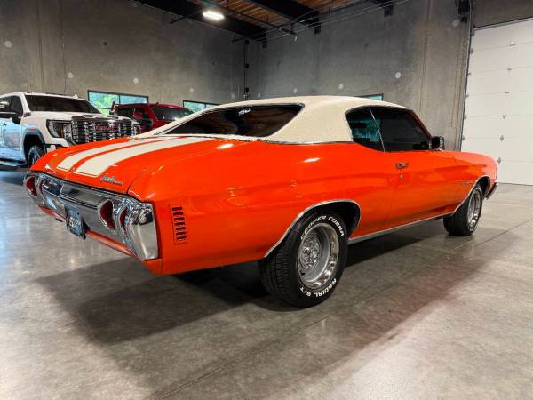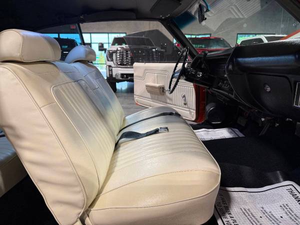 6.0L LS SWAPPED RESTOMOD CHEVELLE NOW LIVE! 6.0L LS V8 ENGINE 4-SPEED 4L80 AUTOMATIC TRANSMISSION FACTORY HUGGER ORANGE CAR W/WHITE VINYL TOP DAKOTA DIGITAL GAUGES RETRO SOUNDS W/BLUETOOTH AND USB VINTAGE HEAT/AC HOTCHKINS QA1 SUSPENSION POWER STEERING POWER FRONT DISC BRAKES POSI TRACK TINTED WINDOWS EDDIE MOTORSPORTS ALUMINUM HOOD HINGES WHITE VINYL TOP WHITE INTERIOR RALLY WHEELS COOPER COBRA TIRES CALL OR TEXT JEREMY D AT 360-521-7252 OR JEREMY R AT 360-798-3556