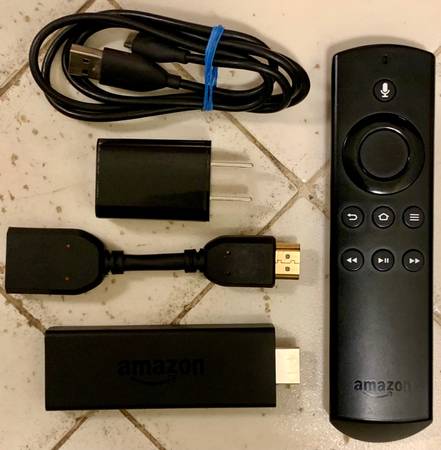 Amazon Fire TV Digital WiFi media streaming stick with Alexa remote, AC power adapter and HDMI extender cable. Gen. 2. Model # LY73PR. Like new in box.