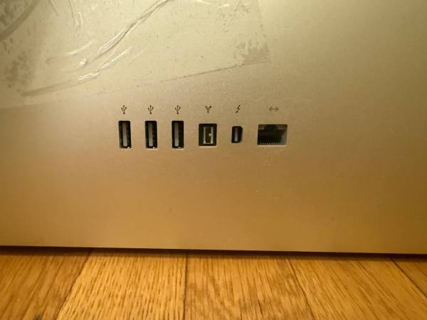 Missing stand and power supply, unable to test further. Likely has a good logic board, camera, and other components. Thunderbolt input cable appears to be in good condition. Chip in the glass bezel in the lower left corner. Sold as is.