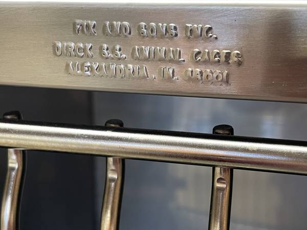 For sale is a professional-grade stainless steel cage bank assembly made by Fix and Sons in Indiana. Selling as part of a practice liquidation. This unit is extremely clean, solid, and only used a handful of times. Functionally and cosmetically, it is practically new.