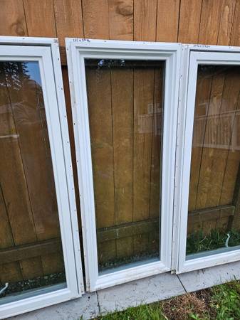 There is a set of three windows. $180 per set. The central window (23 1/2 x 59 3/4) does not open, the other two (29 3/4 x 59 3/4) open left and right. It has side flips for installation and window...