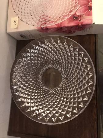 Brand new European crystal diamond-cut platter, never used and kept in original packaging.