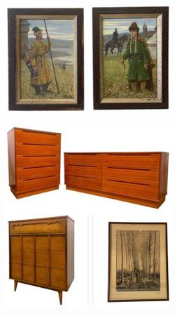 Vintage Mid Century Modern Credenza Dresser Sofa Table Rug Desk Art Painting (BigWhaleConsignment Seattle)