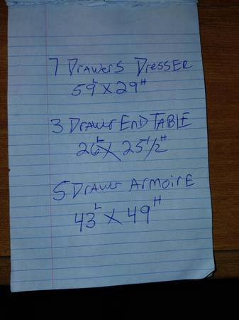 All the furniture I currently have listed comes from a non-smoking and pet-free environment I have a matching dresser for this particular armoire if you're interested I would be happy to work a package deal. There are no major defects to mention just some overall light scratches on the surface here and there from years of use. All of the drawers and door function properly as they should. No stains or moisture defects also there are no out of the ordinary smells just nice solid wood. Feel free to request more pictures or ask any questions.