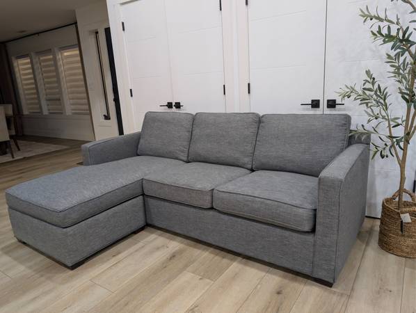 Crate and barrel sectional sofa chaise can be revered to either side Flawless condition Dimensions 90x64 Performance feather filled fabric Can deliver for free