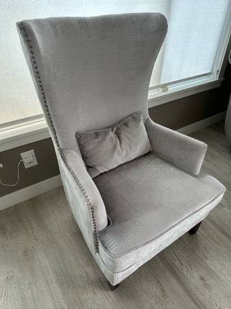 Gray/Silver wingback armchair for sale. Its in excellent condition.