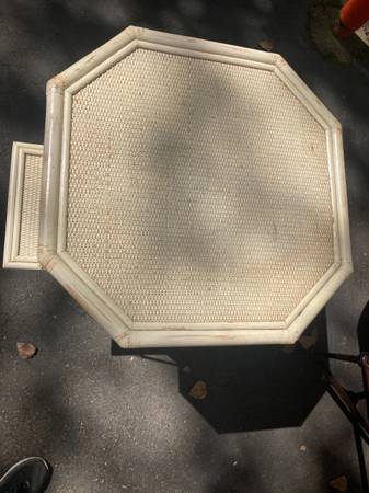 This woven accent table by Heckman Furniture Company is 30h x 25d and has clever drop shelves that add both functionality and design interest.