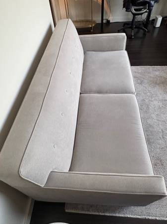Modern design sofa Located downtown Seattle No pets no smoking $1500 new 78” wide 34”high 38” deep Fabric is scotch guard Water resistant Moving out of state Great for a small apartment