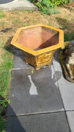 Beautiful Japanese pot with birds/ love birds. Glazes terracotta with birds on each side. Measures 24 1/4 wide x 16 3/4 t. $750 Dragon glazed pot Measures 15 1/2 t x 15 w- $750 Buy both for $1400...