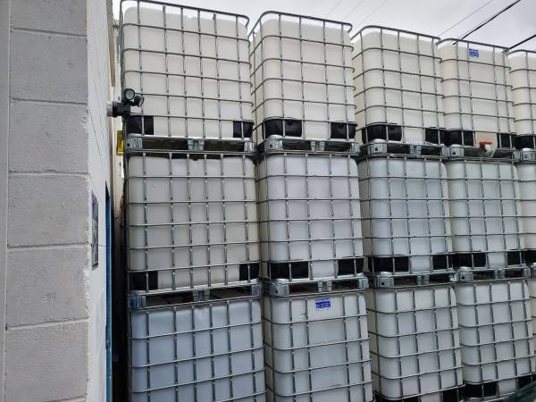 We have 275 & 330 gallon tanks that make very good rain barrels, or storage for other liquids. *These tanks are NOT for potable water* These had a non-hazardous fluid in them, and only used once. They are made of plastic and easy to clean, and enclosed in a galvanized (rust-resistant) frame. There is a 6 inch hole on the top and a pour spout at the bottom that is threaded. They are stackable and allow easy access for a forklift.