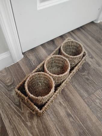 Round Seagrass Wicker Nesting Storage Basket Set with Rectangle Tray (4 Pieces) 15”LX5”WX4”H/4”D