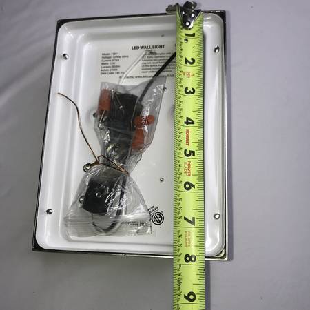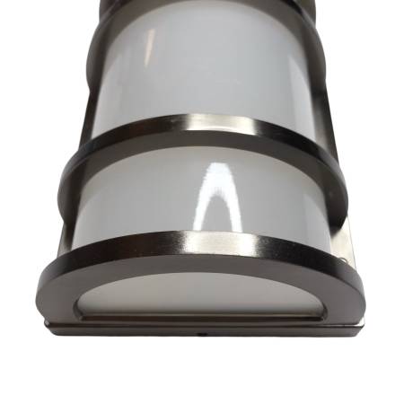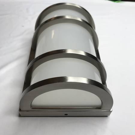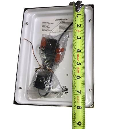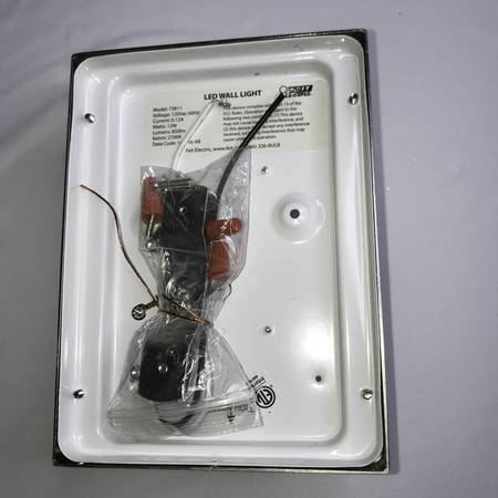 FEIT Electric LED Wall Light Silver Milky White Wall Sconce Half Cylinder Shaped Dome. Indoor or Outdoor Use. Approximately 8 inches tall x 6 inches wide x 3 3/4 inches deep. Mounts to wall. Metal /...