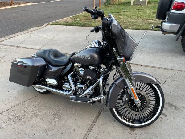 2014 Harley Davidson Street Glide Special HO 103ci. Stage l download. HD cone air intake. Vance and Hines big radius pipes. 21” front black spoke with white wall. Rear black spoke with white wall. (Have original wheels and tires) Rear is lowered 1”. Bags are 5” stretched. (Have original bags as well) 12” black ape bars. Two seats, HD low pro and a Sundowner for long trips. Detachable passenger back rest and detachable touring pack with arm rest. Bike looks, runs and sounds great. Nothing wrong with bike. I’m selling to upgrade to newer one. It has recently had a 3 hole oil change. Everything kept up on bike for maintenance. Asking $15500 OBO 509-nine4nine-3399