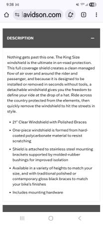 Harley Davidson King-Size H-D Detachables 21 in. Windshield 57400328 like new in box with hardware
