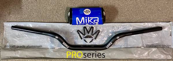All new unused possible local delivery Mika YZ bend handlebars with Blue Mika bar pad and Blue Yamaha ODI clamp on universal grips will fit Honda CRF KAWASAKI KX KTM Husqvarna Gas Gas Suzuki or any...
