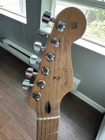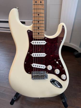 Selling a near mint Fender Player Limited Edition Stratocaster. Olympic White. Roasted maple neck and fretboard with 9.5 inch radius and medium-jumbo frets. Custom shop Fender Fat 50's pickups. Tortoise Shell pickguard and backplate. New Fender FE610 padded gig bag (without tags). New Ernie Ball black nylon guitar strap (without tags). 2 sets of Ernie Ball Super Slinky 2223 (9-42) Nickel Wound Electric Guitar Strings. All original parts and hardware. Tremelo bar and allen wrenches included.
