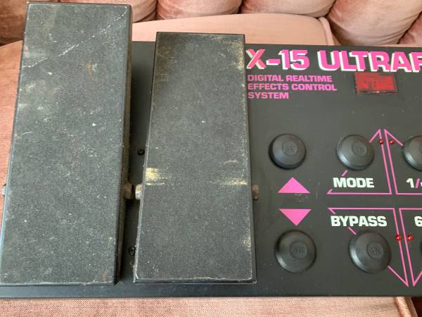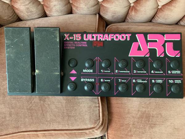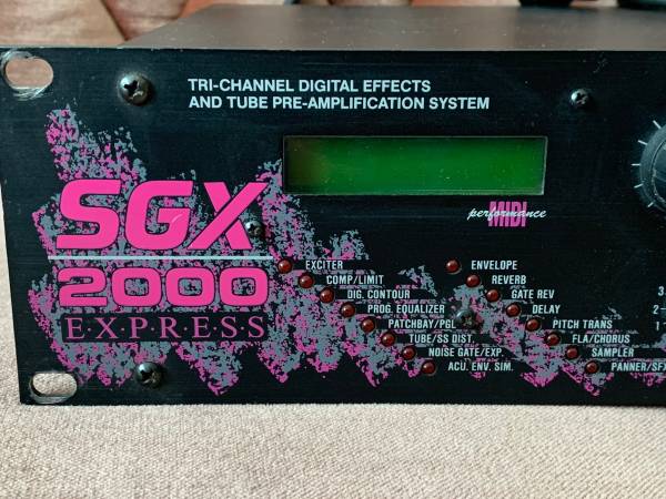Yes, this is the 1st GEN ART SGX 2000 Express with the famous 'clown-vomit' graphics, fans will tell you. This unit also includes the hard-to-find huge X-15 foot controller in extremely good condition! With a press of a foot button on the X-15, you can instantly have a different sound, great for live playing and recording (no power cord for the X-15 is included and it is in untested condition, but appears in excellent condition with beautiful graphics). This comprehensive rack effects unit and foot controller combo from the 1980's is in good working condition. It has numerous effects combinations and presets that are programmable and can be edited and saved by the user. This complete effects package in a rack will allow you and your instrument to explore endless numbers of different tones and effect combos, and save and recall them. Effects include: exciter, compressor/limiter, digital contour, programmable equalizer, patchbay/PGL, tube/ss distortion, noise gate/exp., act.env.sim., envelope, reverb, gate reverb, delay, pitch trans., flanger/chorus, sampler, two effects loops and panner sfx. It has a surprisingly powerful pre-amp and produces that essential 1980's heavy chorus sound. But this unit is not meant only for guitars players! Bass players, keyboardists, vocalists, and many acoustic and electronic musicians can explore the literally endless possibilities that the ART SGX 2000 Express offers with its deep diving, programming and tweaking capabilities. This unit is in good tested working condition, only selling because it's no longer used. Display backlight flickers on and off, but is still readable and does not affect the unit's settings. Red LED numeral display is in good condition. Five-foot grounded power cord is attached and in great condition. Two headphone outputs, and MIDI in, out, and thru. This unit takes up two rack spaces and is ready to set up with your rig. And it comes with the rare X-15 foot controller! Do not miss out on this one!