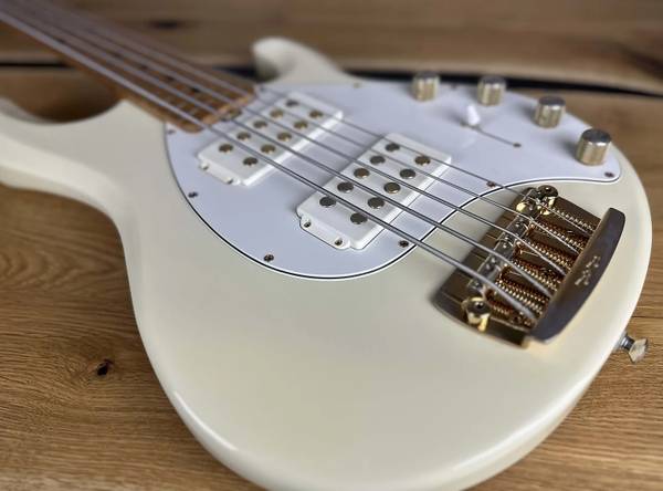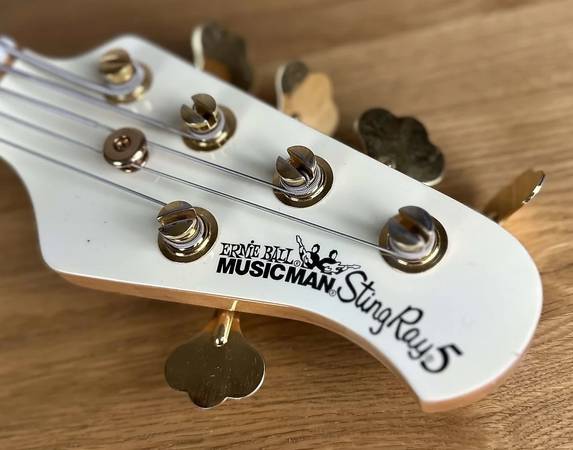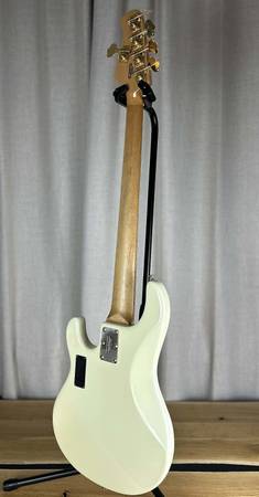2017 Ernie Ball Music Man StingRay 5 string White HH This was the last year of the regular Stingrays before they switched to the Stingray Special in 2018. Gold Hardware with a Fender hard shell...