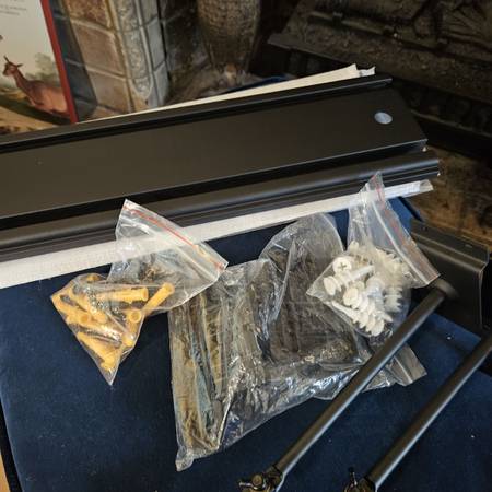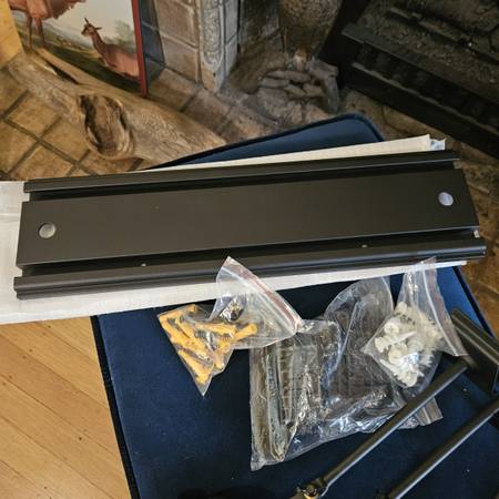 4-Guitar Wall Rack. Actually designed to hold 5 guitars, but missing one arm. This is a slat wall system. Three aluminum slat wall sections with all the mounting hardware and 4 long arm adjustable guitar holders. Very nice system! Display your guitar buddies in style and security! $65 cheep bux in West Seattle!
