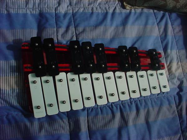 //-- Lake City - Cedar Park N.E. Seattle . -- --- -... -- MADE By PERIPOLE -- - - Very nice 20 note - Xylophone / -- 18" LONG - chromatic scale song bell - chimes - Note names are on the bars, and...