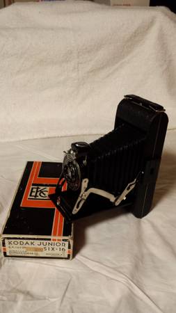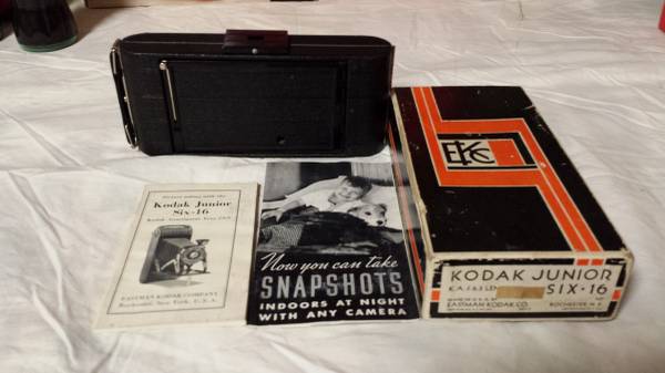 Original owner, 1940's Kodak Junior Six-16 collapsable camera. No dout, the best condition you will ever find. Original box and all literature. Perfect for a avid collector. No digital with this one.