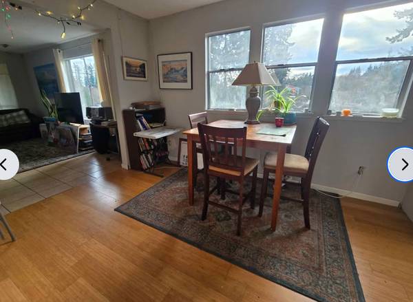 Great house with professional household. Quiet street. Close to amenities. Next to wooded park. Deposit of $700 and background Non drinking or drug use for most guest. Last or payments towards last are required. Bus lines and speed bus to downtown Seattle 2 blocks to 1 mile away. Bright window's high ceilings. Washer and dryer in unit. Next to park. Fire pit out front. Friendly positive home. Central to working in Seattle or the eastside. Must show income at least 2.5 times rent. Bed and Some furnishing can be provided or can be removed.