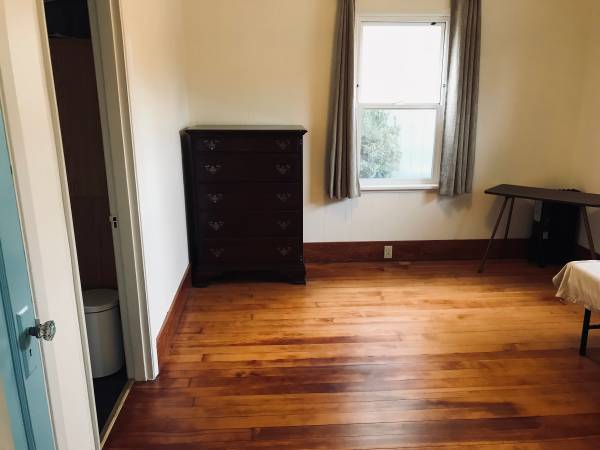 The room: This room is 12ft x 14ft It has its own closet, a large sunny east facing window, and a north facing window and shared adjoining bathroom. There is some furniture, dresser, bedside drawers if you need them.