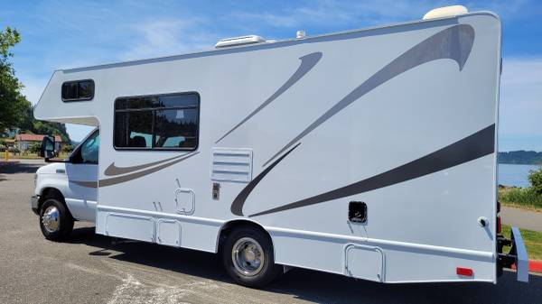 Free 3 month/3,000-mile powertrain warranty included, fresh gelcoat paint, generator tune-up, excellent tires, fluids changed, full-size spare tire, full roof reseal, commercial quality fabrics, water-resistant composite roofing, removable outdoor picnic table, HUGE "basement” storage, chemical-free winterization, central heating, solar battery charger ready, Class III hitch w/ Tow/Haul.