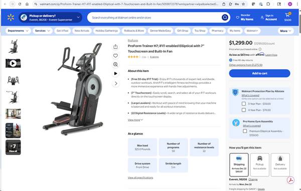 Selling our Pro-Form HiiT trainer - had bought from Costco for the misses but has preferred walks and stationary bike. In great condition and perfect for anyone looking for low impact trainer. Similar to elliptical but with smaller footprint and more stepping type movement. In great working condition, just doesn't get a lot of use in our household. Please message if interested - listed OBO. Like to move quickly. Will need a truck to move. Can help with loading or delivery if near Mill Creek/Snohomish/Everett area.