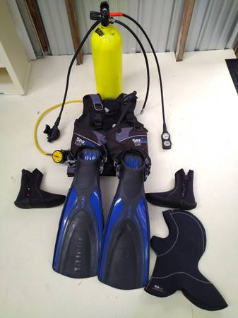 Mint Condition complete scuba diving outfit; includes everything including carry bag. Only used once. 14mm suit; Size medium (I'm 5'9"-160lb.) 60 tank w/ current hydro and visual. Health forces sale.