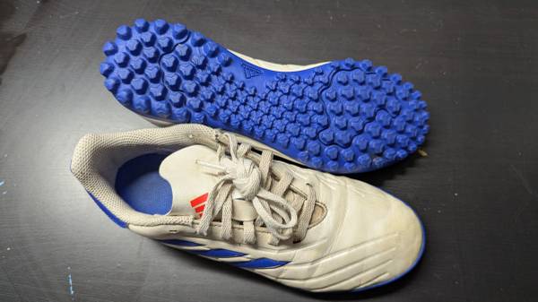 Adidas Copa Pure TF turf shoes, size 5. Pearl White / Royal colorway. Worn ~10 games indoor, in very good condition. Asking $20