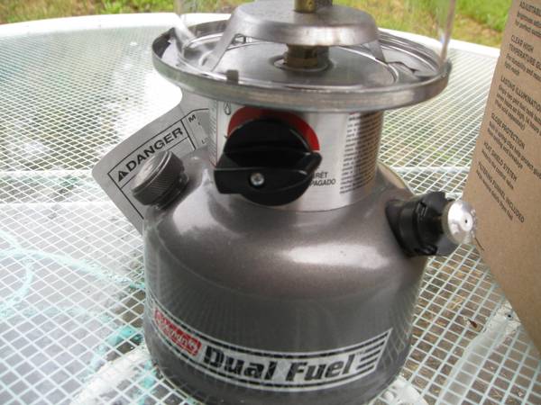 Brand New and in box with fuel filter and instructions. This Dual Fuel Premium 2 Mantel Lantern is date stamped on bottom 5 14, which means it was manufactured May 2014, 10 years ago. This is when it was purchased new, but never used. Rated at 861 Lumens and the Run Time is up to 7 hours on high with one tank of fuel. Cash only. Please do not ask if it is still available. If ad is up it is available. NO TEXTING!!!