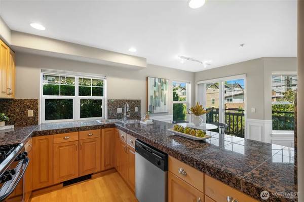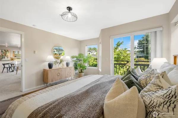 Ballard at its best! You will love your sunny corner unit in this boutique pet friendly building. Entertain easily in this open floor plan featuring a large chef's kitchen with lots of cabinet space, granite counters with seating, gas cooking, and stainless steel appliances. Plenty of space for a dining room table and cozy seating around the gas fireplace. Sliding doors open onto balconies off the living room and bedroom. In unit washer and dryer plus a parking space. Walk to your favorite restaurants, bakeries, shops, groceries, library, Sunday Market and movies at the Bay. Fine dining at Rays Boathouse, Shilshole Bay Marina and Golden Gardens are nearby.