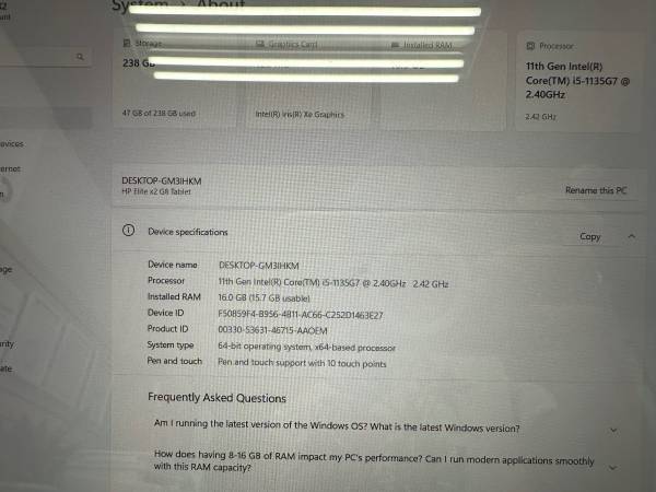 Processor: 11th gen Intel(R) Core(TM) i5-1135G7 CPU @ 2.40GHz 2.42 GHz