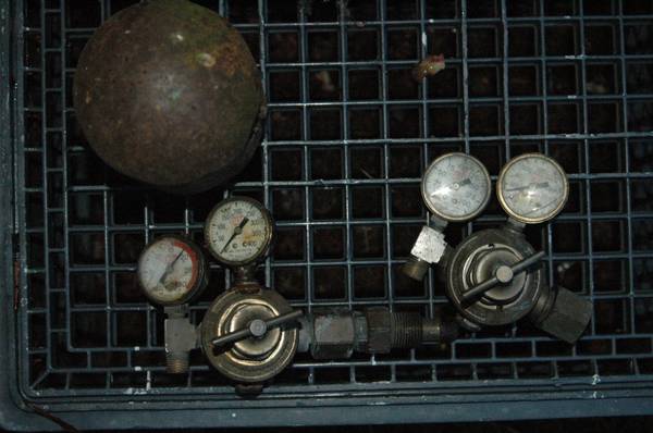 Oxygen Acetyl tanks, with gauges. 48 " tall. empty. Ten year old tanks. Nice condition, stored inside. poor light photo. $200 for pair.