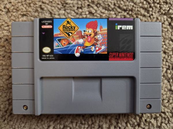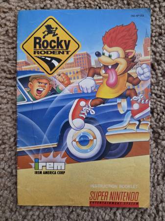 SNES Super Nintendo Rocky Rodent including manual and box. See photos for condition of items. Pickup in Seattle and cash only.