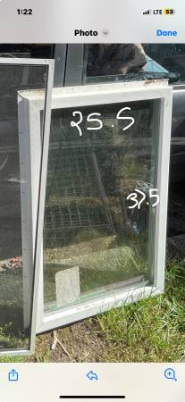 FREE vinyl windows in good condition. 2 fixed, one works tho it's been uninstalled in carport so it does open and close and have a screen, just can't guarantee the small wooden connecting parts aren't swollen or something tho if framed in still would be operable maybe best for outbuilding or shed, garage