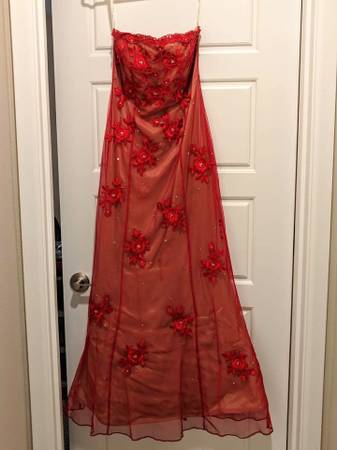Red strapless dress worn once then stashed in the closet. Originally over $200, size 2; have matching shoes too if you can wear a 6.5 Porch Pick Up Preferred